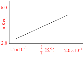 A schematic plot of In Keq versus inverse of temperature for a reaction is shown below
