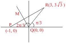 Let P = (-1, 0), Q = (0, 0) and R = (3, 3√3) be three points. The equation of the bisector of the angle PQR