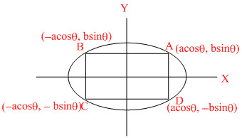 Area of the greatest rectangle that can be inscribed in the ellipse