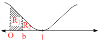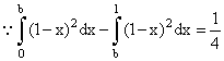 Let the straight line x = b divides the area enclosed by y = (1 - x)2, y = 0 and x = 0 into two parts R1(0 ≤ x ≤ b) and R2(b ≤ x ≤ 1) such that R1 - R2 = 1/4 . Then b equals