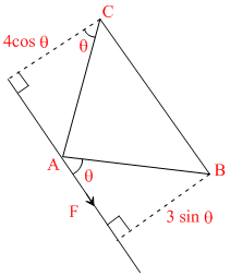 In a right angle ᐃABC, ∠A = 90o and sides a, b, c are respectively, 5 cm, 4 cm and 3 cm. If a force F has moments 0, 9 and 16 in N cm. units respectively about vertices A, B and C,then magnitude of F is