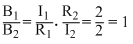 If in a circular coil A of radius R, current I is flowing and in another coil B of radius 2R a current 2I is flowing, then the ratio of the magnetic fields BA and BB, produced by them will be