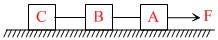 Three identical blocks of masses m = 2kg are drawn by a force F = 10.2 N with an acceleration of 0.6 ms-2 on a frictions surface, then what is the tension (in N) in the string between the blocks B and C ?