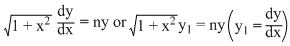 Squaring, (1 + x2)y21 = n2y2Differentiating, (1 + x2)2y1y2 + y12. 2x = n2 . 2yy1 (Here, y2 =