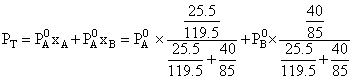 Vapour pressure of chloroform (CHCl3) and dichloromethane (CH2Cl2) at 25oC are 200 mm Hg and 41.5 mm Hg respectively. Vapour pressure of the solution obtained by mixing 25.5 g of CHCl3 and 40 g of CH2Cl2 at the same temperature will be: