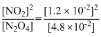 For the reaction equilibrium N2O4 (g) ⇋ 2NO2(g) the concentrations of N2O4 and NO2 at equilibrium are 4.8 × 10-2 and 1.2 × 10-2 mol L-1 respectively. The value of Kc for the reaction is