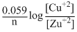 For the redox reaction Zn(s) + Cu2+(0.1 M) → Zn2+(1M) + Cu(s) taking place in a cell, Eocell is 1.10 volt. Ecell for the cell will be