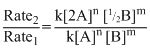 Rate1 = k [A]n [B]m; Rate2 = k[2A]n [1/2B]m