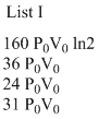 Match the paths in List I with the magnitudes of the work done in the List II and select the correct answer using the codes given blow the lists.