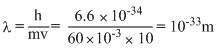 D.10-33 metres Planck′s constant, h = 6.63 × 10-34 Js.