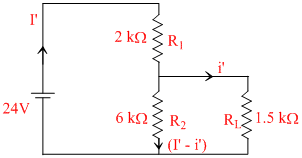 24 - 6 × 103 I′ - 1.5 × 103 i′ = 0