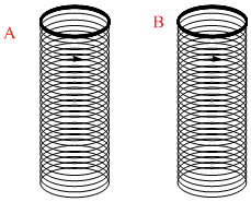 Two metallic rings A and B, identical in shape and size but having different resistivities ρA and ρB, are kept on top of two identical solenoids as shown in the figure. When current I is switched on in both the solenoids in identical manner, the rings A and B jump to heights hA and hB, respectively, with hA > hB. The possible relation(s) between their resistivities and their masses mA and mB is(are)