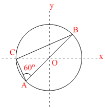placed at points A, B and C, respectively, as shown in the figure. Take O to be the centre of the circle of radius R and angle CAB = 60oFigure: