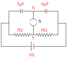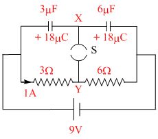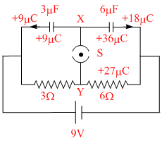 A circuit is connected as shown in the figure with the switch S open. When the switch is closed the total amount of charge that flows from Y to X is