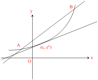 ⇒ tangent to the curve y = ex will intersect the given line to the left of the line x = c.