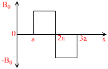 , in the region 2a < x < 3a, where B0 is a positive constant. A positive point charge moving with a velocity
