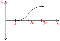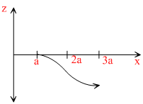 , where v0 is a positive constant, enters the magnetic field at x = a. The trajectory of the charge in this region can be like