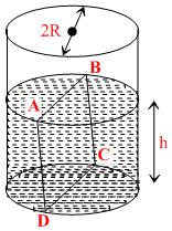 Water is filled up to a height h in a beaker of radius R as shown in the figure. The density of water is ρ, the surface tension of water is T and the atmospheric pressure is P0. Consider a vertical section ABCD of the water column through a diameter of the beaker. The force on water on one side of this section by water on the other side of this section has magnitude