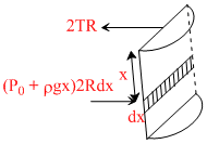 (P0 + ρgx) 2Rdx - 2RT = F2P0Rh + Rρgh2 - 2RT = F