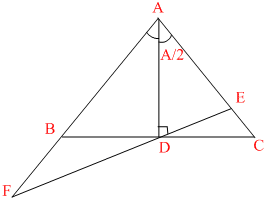 Internal bisector of ∠A of triangle ABC meets side BC at D. A line drawn through D perpendicular to AD intersects the side AC at E and the side AB at F. If a, b, c represent sides of ᐃABC then