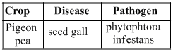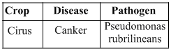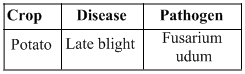In the following table identify the correct matching of the crop, its disease and the corresponding pathogen