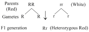 If a homozygous red flowered plant is crossed with a homozygous white flowered plant, the offspring would be