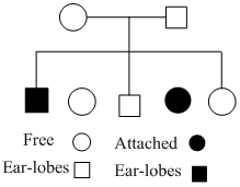 Given below is a pedigree chart of a family with five children. It shows the inheritance of attached earlobes as opposed to the free ones. The squares represent the male individuals and circles the female individuals and circles the female individuals. Which one of the following conclusions drawn is correct?