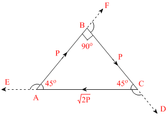 . it has been depicted in the figure above. The angles of triangle are 90o, 45o & 45o. So angles between P&Q is 90o, angle between Q&R is 135o and angle between R and P is 135oCreate a free account to view solution