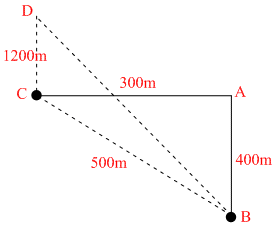 BD2 = CB2 + CD2 = 5002 + 12002