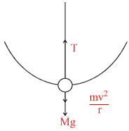 A stone tied to a string is rotated with a uniform speed in a vertical plane. if mass of the stone m, the length of the string is rand the linear speed of the stone is v, when the stone is at its lowest point, then the tension in the string will be