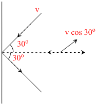 A1 kg particle strikes a wall with velocity 1 m/s at an angle 30o and reflects at the same wall in 0.1 second then the force will be :