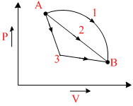 An ideal gas goes from state A to state B via three different processes as indicated in the P-V diagramIf Q1, Q2, Q3 indicate the heat absorbed by the gas along the three processes and ᐃU1, ᐃU2, ᐃU3 indicate the change in internal energy along the three processes respectively, then
