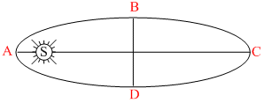 The earth rotates about the sun in an elliptical orbit as shown in figure. At which point its velocity will be maximum ?