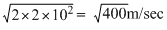 A hole is made at the bottom of the tank filled with water (density 1000 k g / m3). If the total pressure at the bottom of the tank is 3 atmosphere (1atmosphere = 105 N/ m2), then the velocity of efflux is