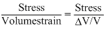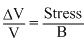 For constant hydraulic streess on an object, the fractional change in the object′svolume (ᐃV/ V) and its bulk modulus (B are related)as: