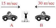 Two cars A and B approach a stationary observer from opposite side as shown in fig.Observer hears no bears. If the frequency of the horn of the car B is 504 Hz, the frequency of horn of car A will be: