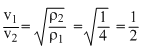The velocities of sound at the same temprature in two monatomic gases of densities ρ1 and ρ2 are v1 and v2 respectively. If ρ1/ρ2 = 4, Then the value of v1 /v2 is