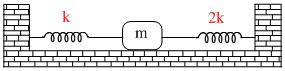 Two spring of force constant k and 2k are connected to a mass as shown below : The frequency of oscillation of the mass is :