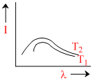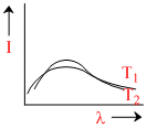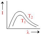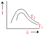 at greater temperature λm will be small λm is the wavelength of the radiaton having highest T2 has λm smaller than that for T1 so, (a)is the right answer.