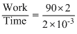 A 40 μ capacitor in a defibrillator is charged to 3000 V. The energy stored in the capacity tor is set through the patient during a pulse of duration 2 ms. The power delivered to the patient is :