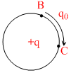 A circle of radius R is drawn with charge +q at the centre. Acharge q0 is brought from point B to C, than work done is