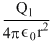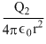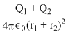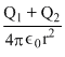 The electric field at a distance r from the center inthe space betwen two concentric metallic spherical shells of radii r1 and r2 carrying charge Q1 and Q2 (r1 < r < r2)