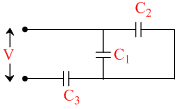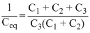 (Since C1 and C2 are in parallel and parallel and wnich is in seres with C3).