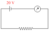 A better of e.m.f.20 V and internal resistance 6Ω is connected to a resister as shown in figure. If current in the circuit is l amp, the ewsistance of the resistor will be :
