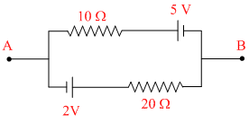 Two batteries are joined with opposite polarity so, total e.m f. = 5 - 2 = 3V