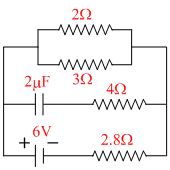 In the figure shown, the capacity of the condenser C is 2μF. The current in 2Ω resistance