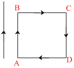 Current in A B is same as that current in straight wire so it will so it eill be attracted. CD portion will be repelled, Net force in the loop will be attractive. Force on Bc AD will be attractive. Force on BC and AD will be opposite to each other so energy will cancel out each other.
