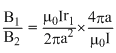 A long straight wire of radius a carries a steady current i. The current is uniformly distributed across its cross section. The ratio of the magnetic field at a/2 and 2a is