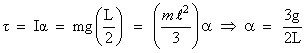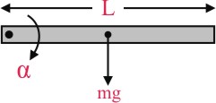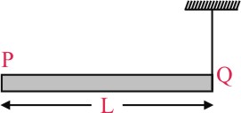 A rod PQ of mass M and length L is hinged at end P. The rod is kept horizontal by a massless string tied to point Q as shown in figure. When string is cut, the initial angular acceleration of the rod is :-