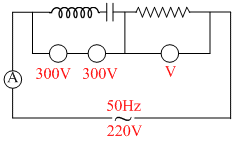 Potential drop over inductance and capacitance is 300 V. As they are in opposite phase they will sum up to zero. So whole of 220 volt (external) will come over the resistance.